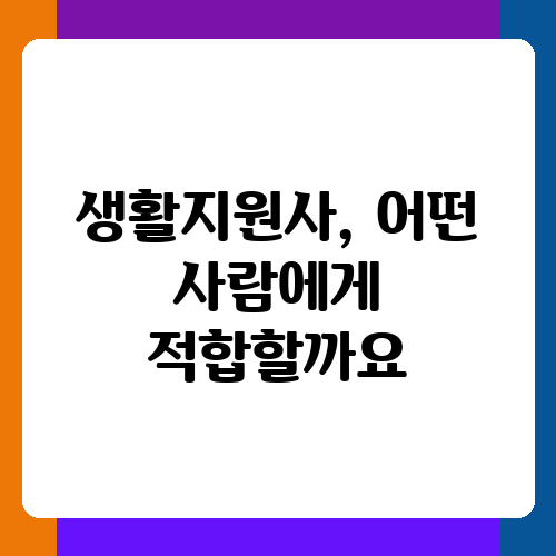 생활지원사는 누구에게나 적합한 직업은 아니에요. 인내심과 섬세함, 그리고 따뜻한 마음이 필요합니다. 어르신이나 장애인을 대하는 데 어려움을 느끼는 분이라면, 생활지원사는 적성에 맞지 않을 수 있습니다. 하지만 만약 어르신이나 장애인을 돕고 그들의 삶에 긍정적인 영향을 주고 싶다면, 생활지원사는 매우 보람 있는 직업이 될 거예요. 돌봄 대상자와 긍정적인 관계를 맺는 것과 힘든 상황에도 긍정적인 태도를 유지하는 능력이 중요합니다. 저는 이 직업을 통해 많은 것을 배우고 성장했고, 제 삶에도 긍정적인 변화가 있었답니다. 자신의 성격과 적성을 잘 고려해서 신중하게 결정하시는 것이 중요해요.