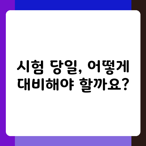 시험 당일에는 컨디션 관리가 무엇보다 중요해요. 충분한 수면을 취하고, 균형 잡힌 식사를 하세요. 시험 전날 밤에는 늦게까지 공부하지 말고, 편안하게 휴식을 취하는 것이 좋습니다. 시험장에 일찍 도착해서 긴장을 풀고, 시험 문제지를 꼼꼼하게 확인하세요. 문제를 풀 때는 시간 관리에 유의하고, 모르는 문제에 너무 오래 매달리지 말고, 다른 문제를 푸는 것이 좋습니다. 그리고 답안 작성 시에는 깔끔하고 정확하게 작성하는 것이 중요해요. 시험이 끝난 후에는 자신의 결과에 너무 좌우되지 말고, 앞으로 더 노력할 것을 다짐하는 것이 중요합니다. 만약 결과가 좋지 않더라도 낙담하지 말고, 다음 기회를 위해 더욱 열심히 노력하면 됩니다. 자신을 믿고 꾸준히 노력하면, 반드시 좋은 결과를 얻을 수 있을 거라고 생각합니다.