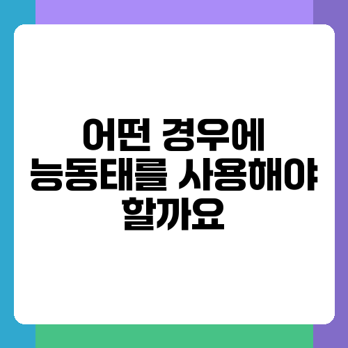 능동태는 주어가 행위의 주체이고 행위를 직접적으로 나타낼 때 가장 효과적입니다. 글이나 말을 명확하고 간결하게 만들어주는 장점이 있어요. 예를 들어, 회사 보고서를 작성할 때, 능동태를 사용하면 자신감 있고 명확하게 의사를 전달할 수 있습니다. "우리는 새로운 프로젝트를 기획했다" 와 같이 말이죠. 또한, 능동태는 책임감을 명확히 할 때도 유용합니다. 누가 어떤 일을 했는지 분명하게 보여주기 때문이에요. 다만, 행위의 주체가 불분명하거나 알 필요가 없는 경우에는 수동태를 사용하는 것이 더 적절할 수 있습니다.