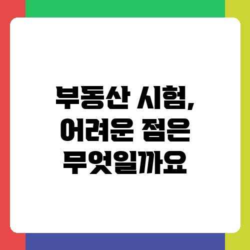 부동산 시험의 가장 큰 어려움은 방대한 양의 내용과 전문적인 용어라고 생각합니다. 특히, 법률 관련 내용은 쉽게 이해하기 어렵고, 암기해야 할 내용도 많아서 많은 시간과 노력이 필요합니다. 또한, 최신 법규 개정 사항을 꾸준히 확인하고 학습해야 하는 어려움도 있습니다. 하지만, 포기하지 않고 꾸준히 노력하면 충분히 극복할 수 있습니다. 주변 사람들과 스터디 그룹을 만들어 서로 정보를 공유하고 학습에 대한 동기 부여를 얻는 것도 좋은 방법입니다. 그리고 자신에게 맞는 학습 방법을 찾는 것이 중요합니다. 어떤 방식으로 공부하든, 자신의 학습 방식에 맞게 꾸준히 노력하는 것이 결국 합격의 지름길입니다.