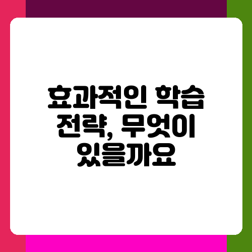 학습 전략은 개인의 학습 스타일에 따라 달라집니다. 하지만 효과적인 학습 전략의 핵심은 '체계성'과 '꾸준함'입니다. 먼저, 전체적인 학습 계획을 세우고, 매일 또는 매주 달성해야 할 목표를 설정하는 것이 중요해요. 단기 목표와 장기 목표를 설정하여 꾸준히 동기 부여를 유지하는 것도 좋은 방법입니다. 그리고 자신에게 맞는 학습 방식을 찾아야 합니다. 예를 들어, 시각적인 학습을 선호하는 사람은 마인드 맵이나 그림을 활용하는 것이 좋고, 청각적인 학습을 선호하는 사람은 녹음된 강의를 듣는 것이 효과적일 수 있습니다. 또한, 다양한 학습 자료를 활용하는 것도 중요합니다. 교재, 요약집, 온라인 강의 등을 적절히 활용하면 학습 효과를 높일 수 있어요. 저는 개인적으로 온라인 강의를 통해 어려운 부분을 쉽게 이해할 수 있었습니다. 그리고 꾸준히 복습하는 것을 잊지 마세요. 학습한 내용을 정기적으로 복습하면 장기 기억으로 저장하는 데 도움이 됩니다.