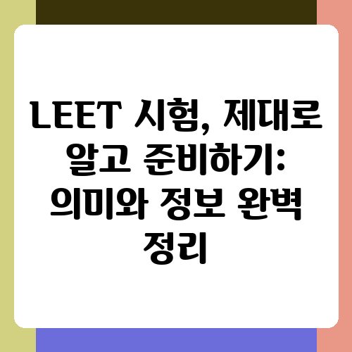LEET 시험, 막막하게 느껴지시나요? 많은 분들이 어려워하는 시험이지만, 체계적인 준비와 전략만 있다면 충분히 좋은 결과를 얻을 수 있습니다. 이 글에서는 LEET 시험에 대한 궁금증을 해소하고, 효과적인 학습 전략을 제시하여 여러분의 성공적인 시험 준비를 돕고자 합니다. 합격의 문턱을 넘는 여러분의 여정을 응원합니다!